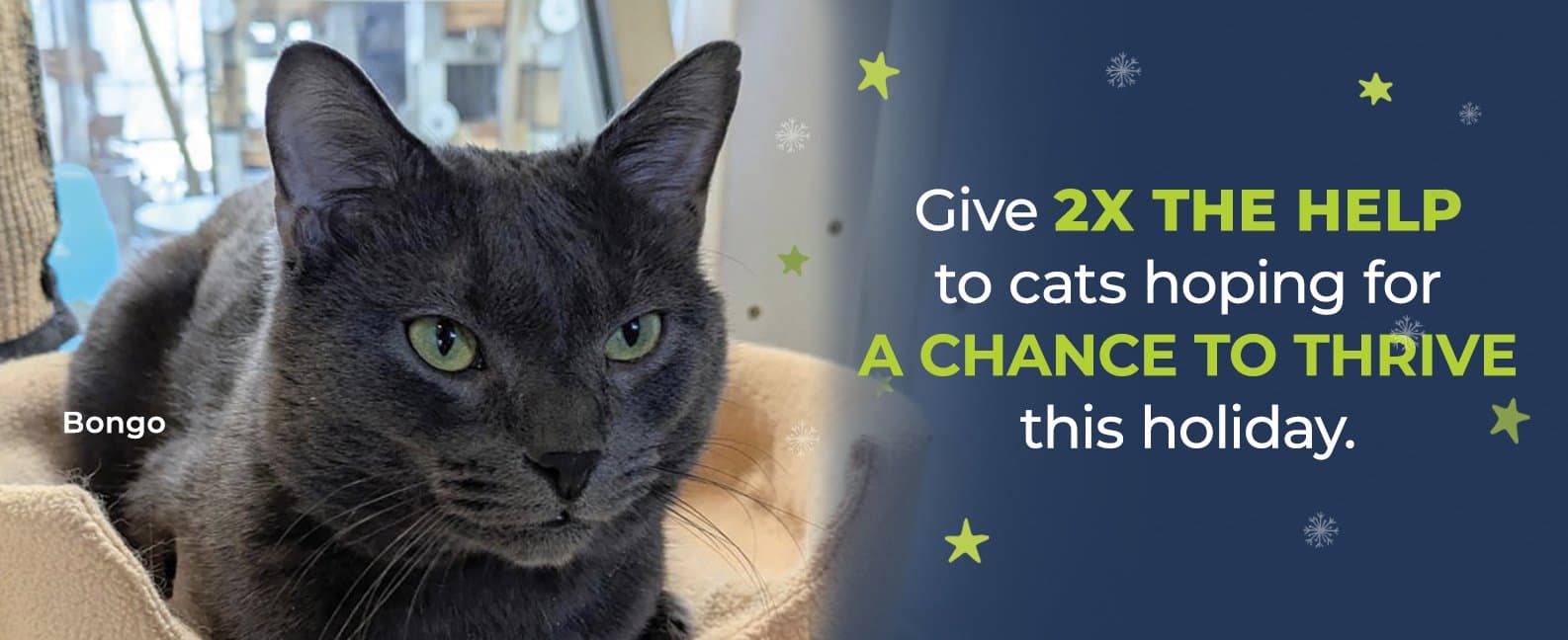 Wherever their journey leads, your support makes it possible for them to live healthy, happy lives. And right now, your impact will be twice as powerful — every gift made by December 31 will be matched dollar-for-dollar, up to $75,000. Don’t miss this chance to give double the care, comfort, and love to cats in need.